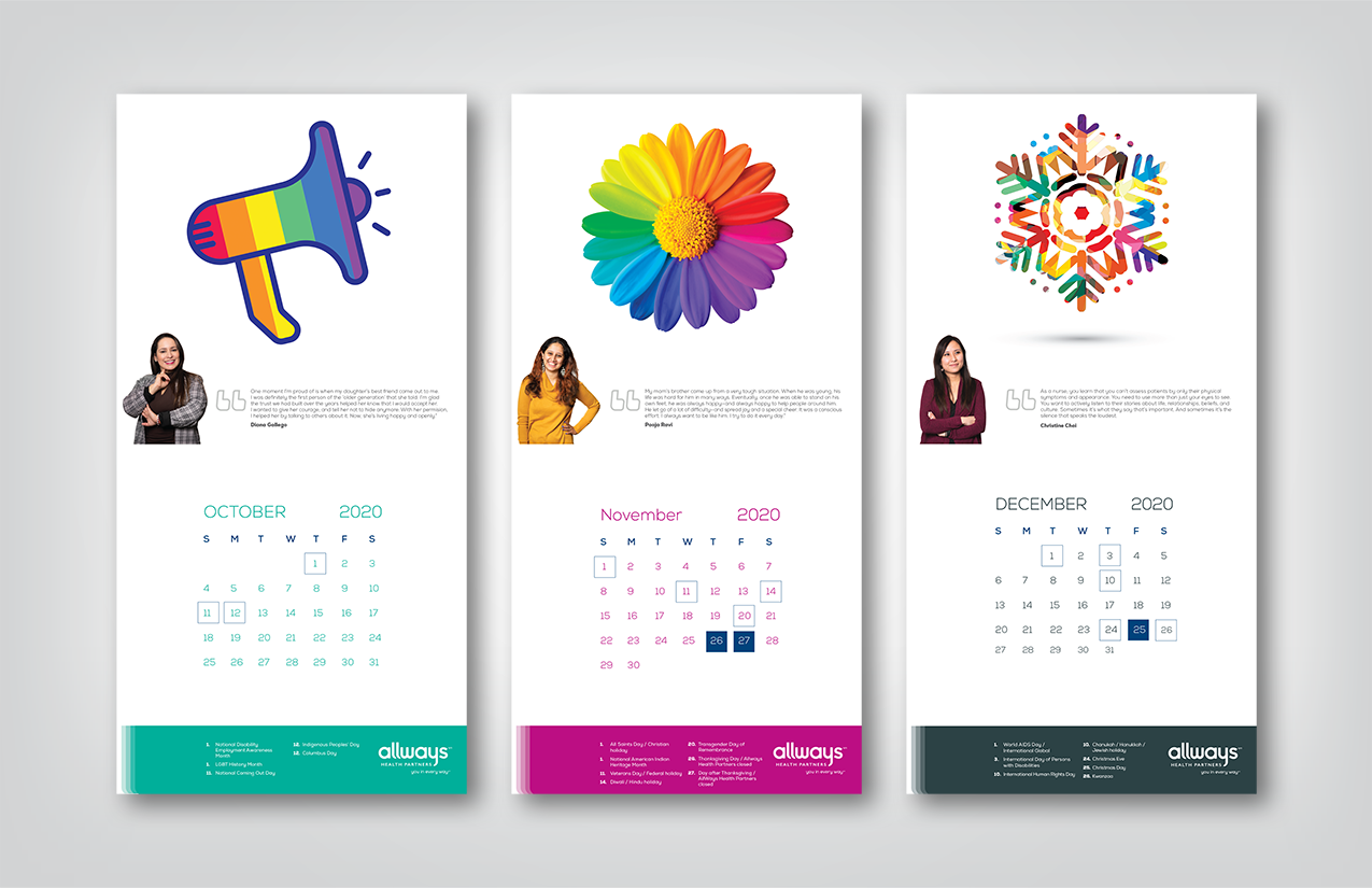 Allways Health Partners 2020 diversity, equity and inclusion calendar