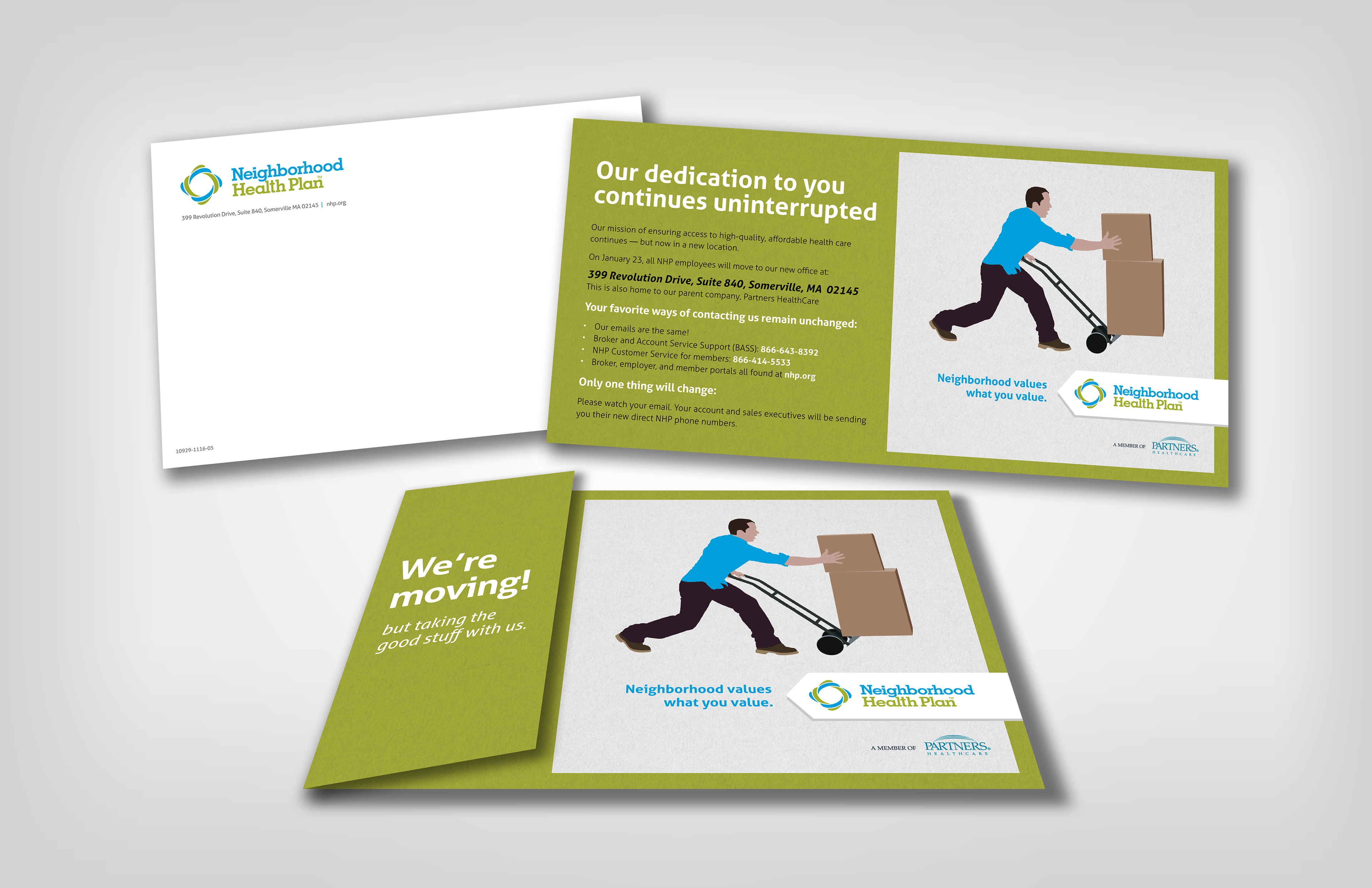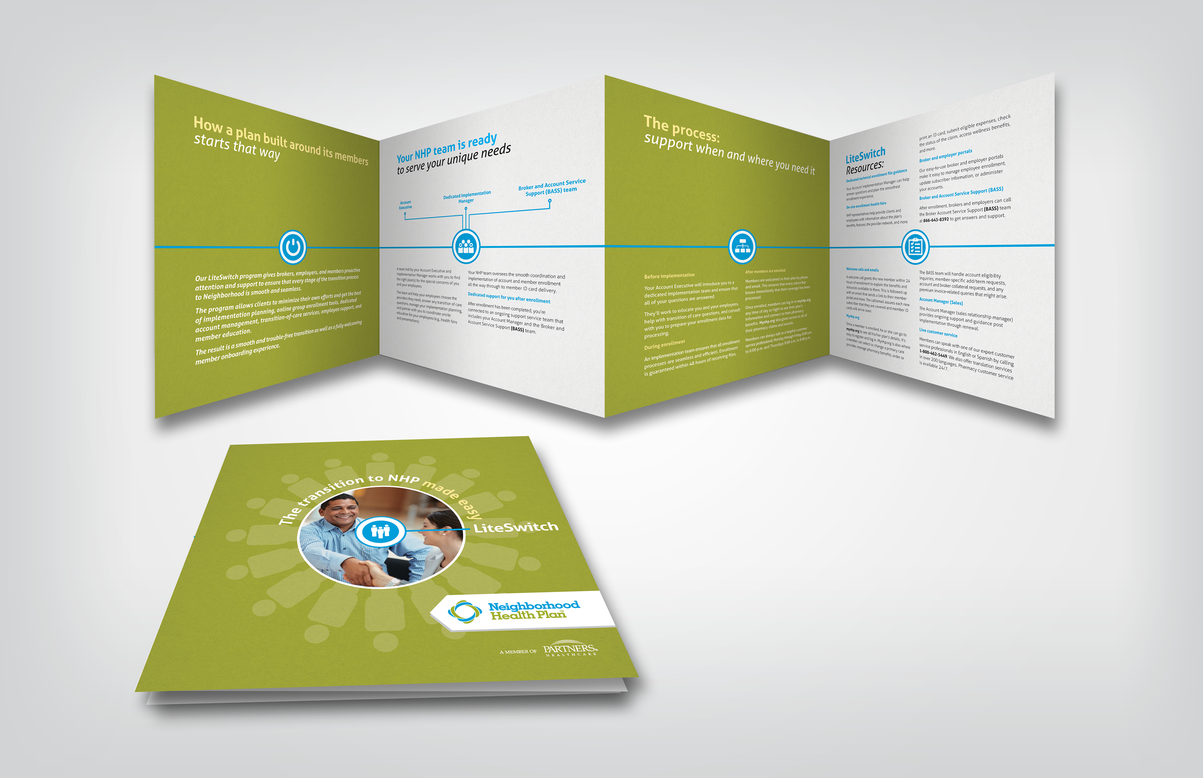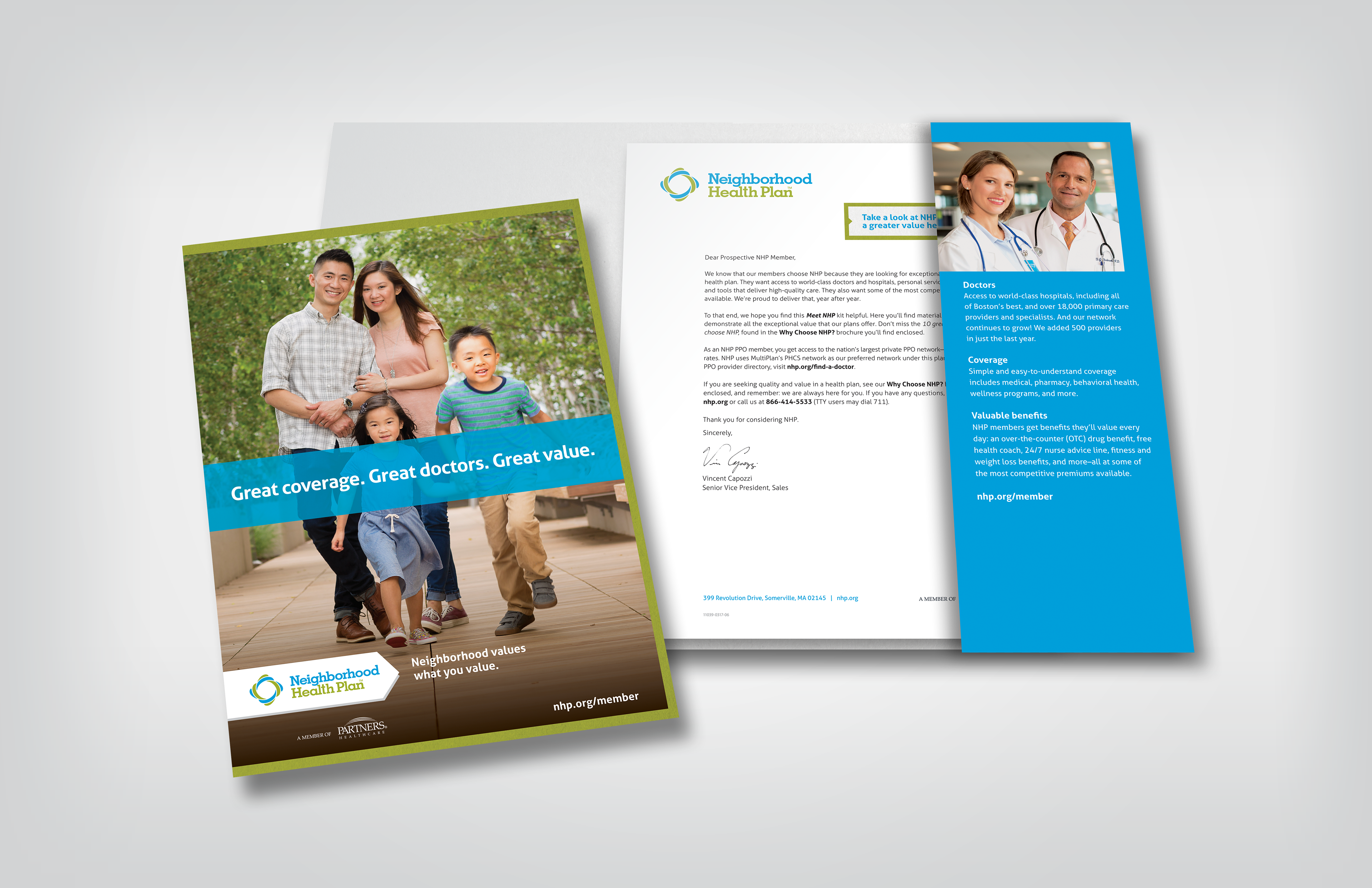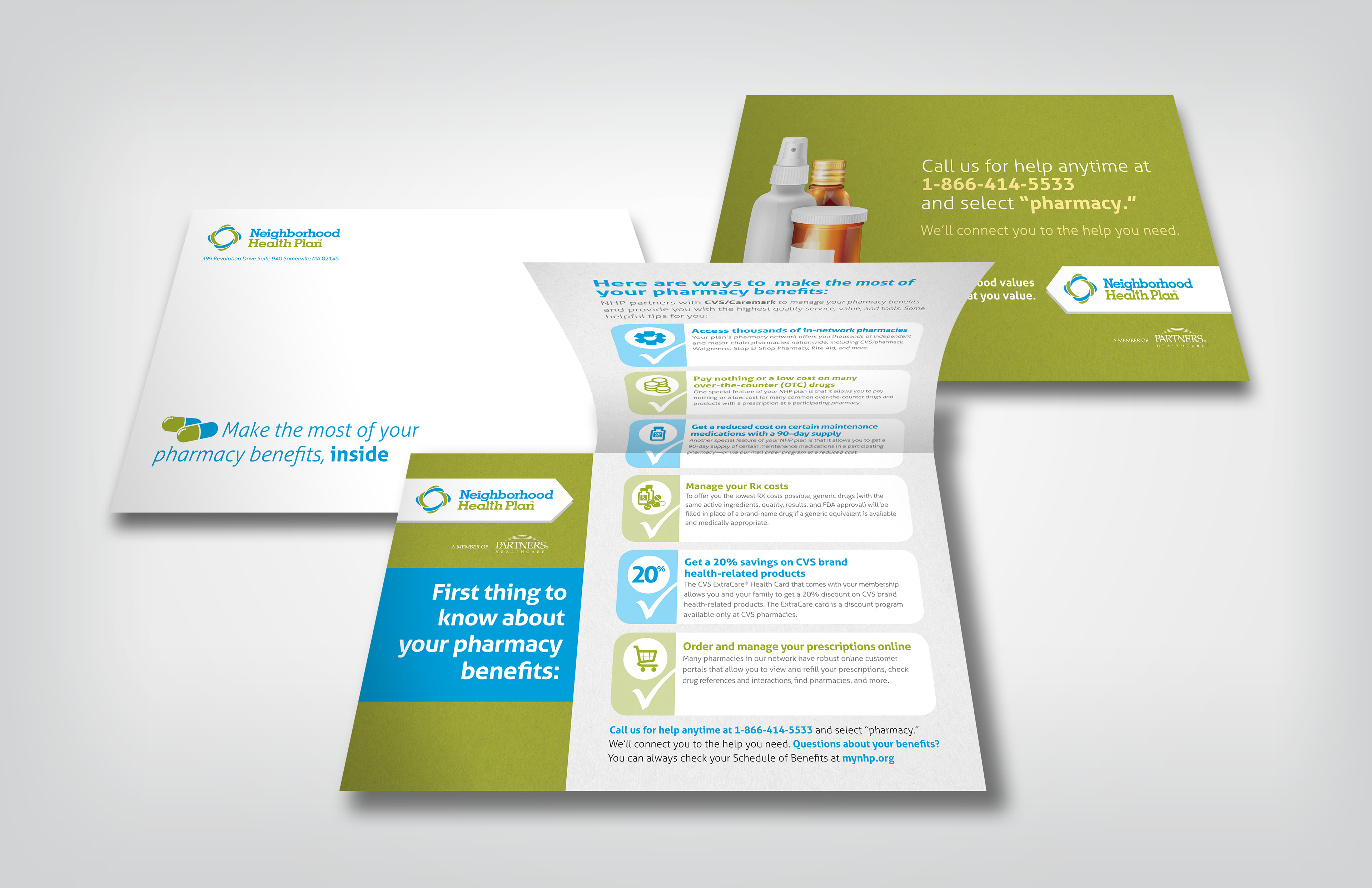 Creation of various brand collateral, direct mail and sales support materials for Neighborhood Health Plan.